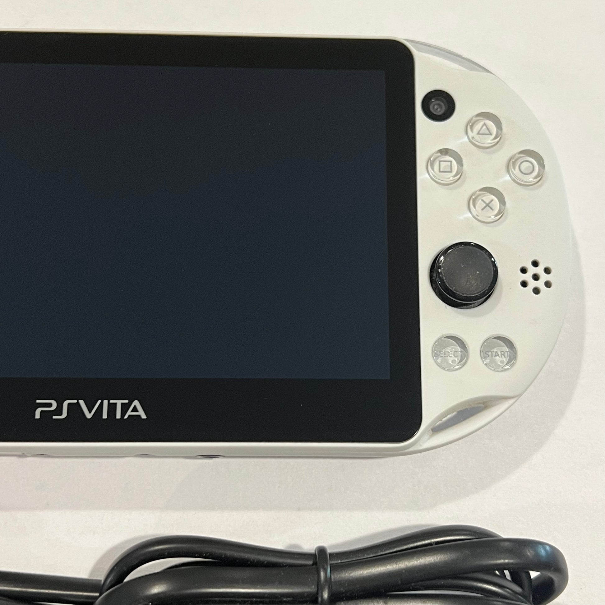 It comes with a charger and has been tested and works. This is an import from Japan, so the X and O are swapped; otherwise everything is the same with a US vita.