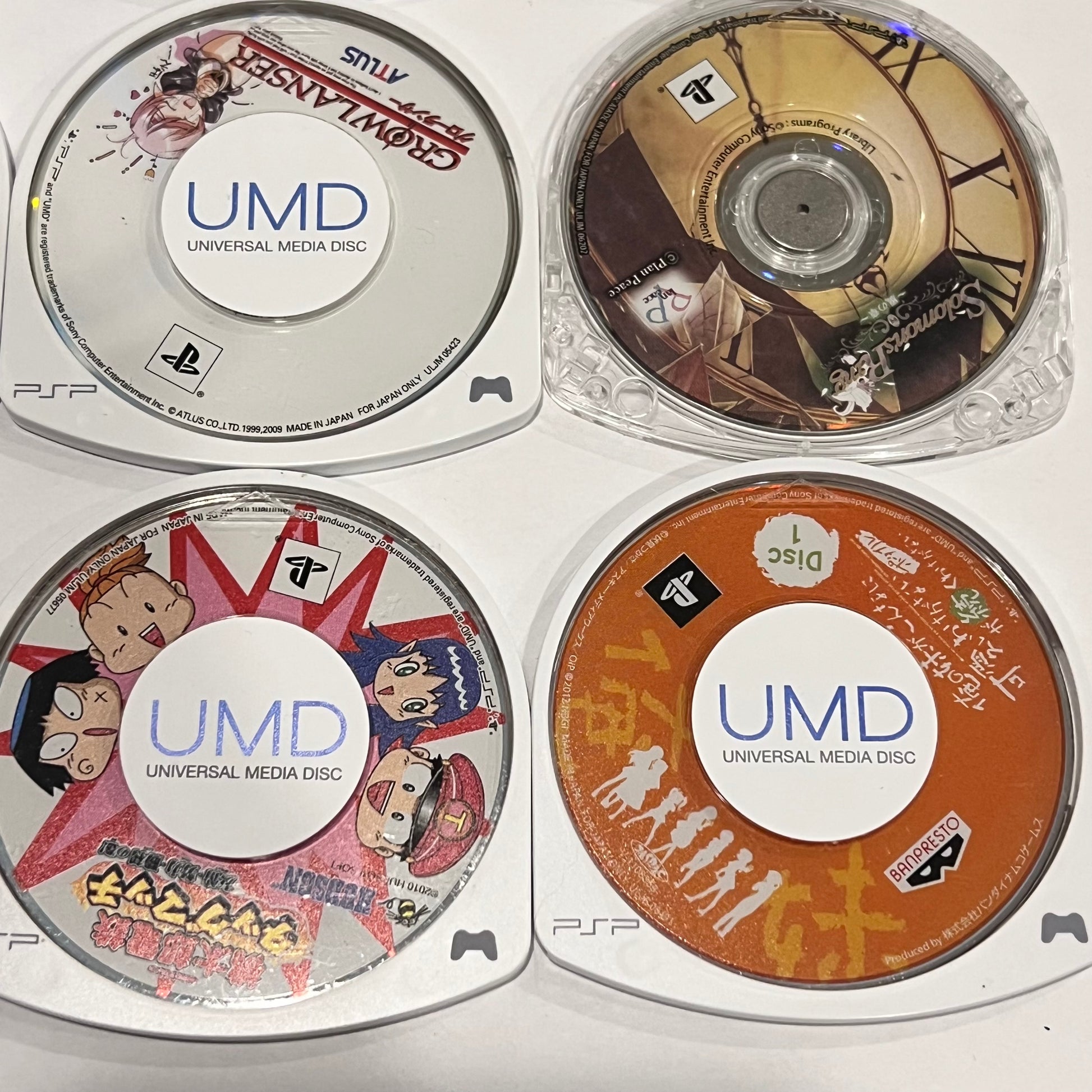 The discs range from good to very good condition. These are imports from Japan, but will work on any PSP. I assume they are only playable in Japanese.